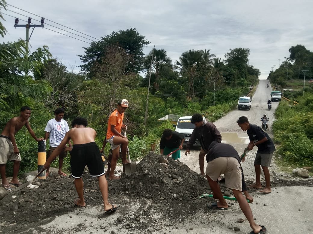 Lian Karau Dikur (Covalima)-Munisipiu Covalima, Postu Administrativu Suai, Xefe Aldeia Busakukun, Suku Debos hodi organiza no mobiliza joven sira iha aldeia atu hamutuk halo servisu voluntáriu hodi hadia estrada ne’ebé aat ne’ebé fo ameasa ba movimentasaun transporte publiku sira tanba ne’e komunidade inisiativa hodi hadia estrada ne’e